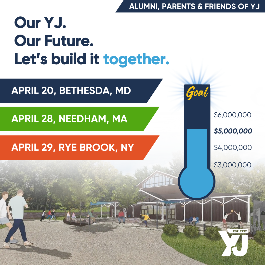 Join Camp YJ for a series of special gatherings bringing together alumni, parents, and friends of YJ. With events taking place at three different locations, each evening offers an opportunity to learn more about our Capital Campaign, celebrate the remarkable progress to date, hear about our newly launched Chai Society, and explore the exciting vision ahead.