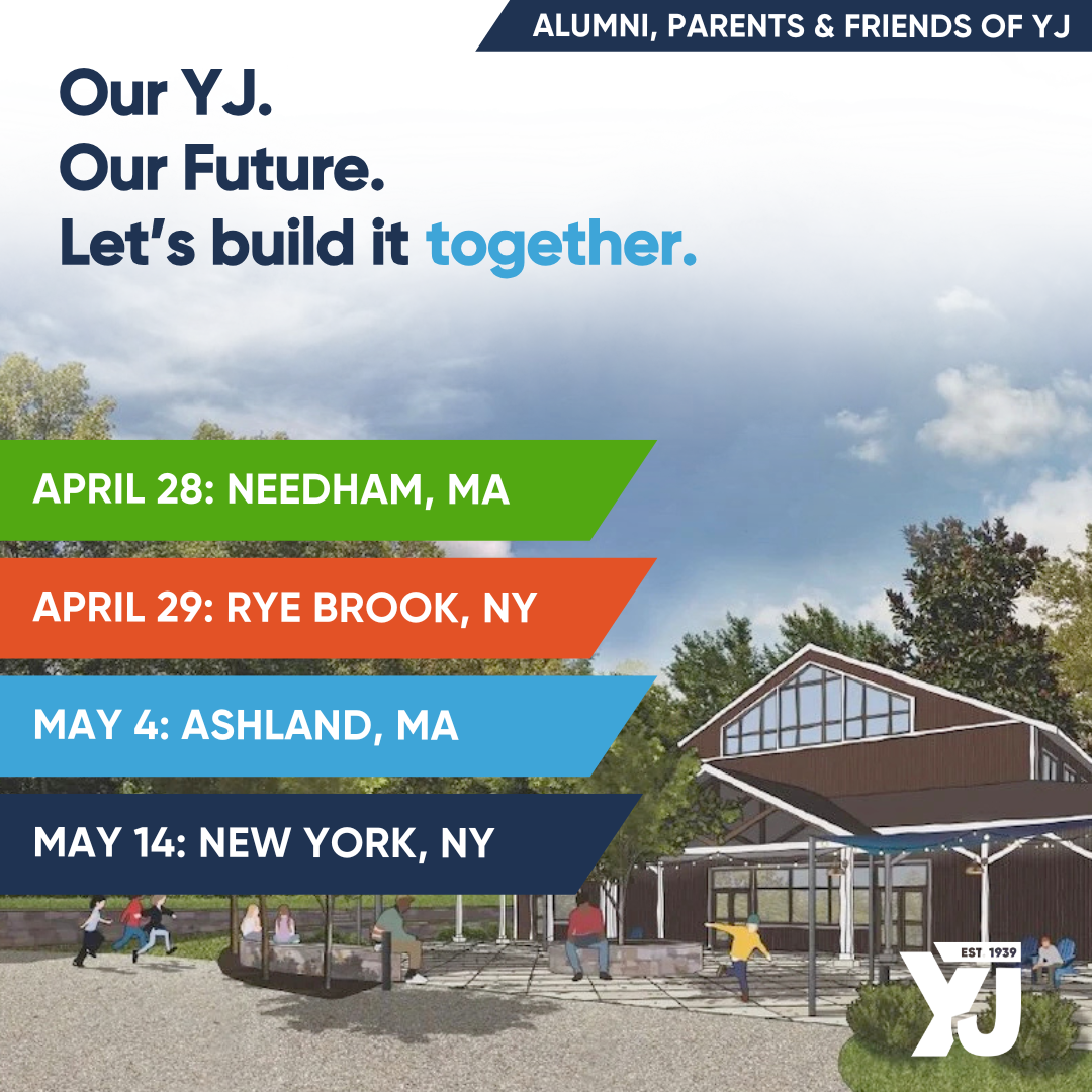 Join Camp YJ for a series of special gatherings bringing together alumni, parents, and friends of YJ. With events taking place at many different locations, each evening offers an opportunity to learn more about our Capital Campaign, celebrate the remarkable progress to date, hear about our newly launched Chai Society, and explore the exciting vision ahead.