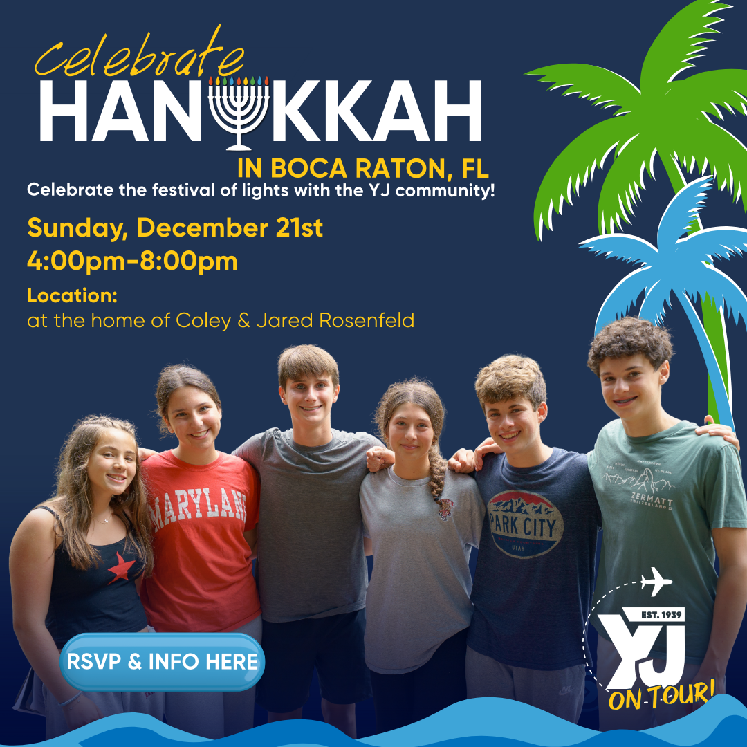 Current and prospective families are invited to celebrate Hanukkah with the YJ community in Boca Raton, FL.