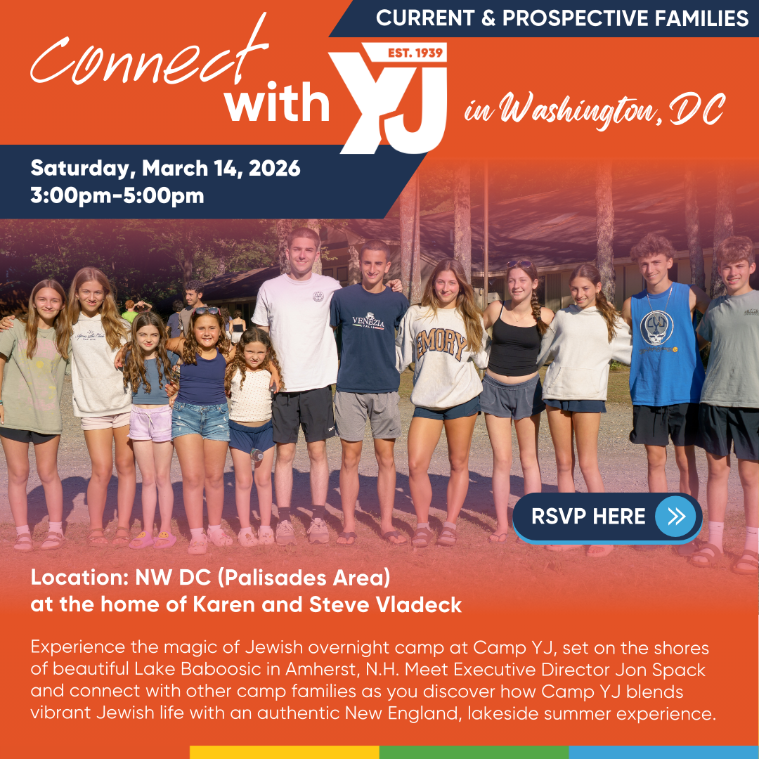 Experience the magic of Jewish overnight camp at Camp YJ, set on the shores of beautiful Lake Baboosic in Amherst, New Hampshire. It is the heart and soul of Jewish camp: Shabbat by the lake, spirited traditions, deep friendships, all woven together with the best of a classic New England summer. Waterfront adventures, pine scented air, and endless days outdoors create an experience that stays with you long after summer ends.Meet Executive Director Jon Spack and connect with other camp families as you discover how Camp YJ blends vibrant Jewish life with an authentic, lakeside summer experience.